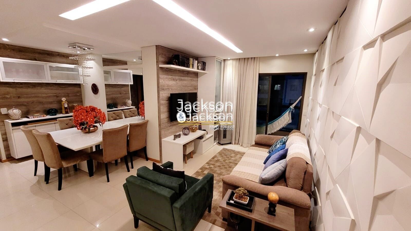 Ao entrarmos no apartamento temos uma aconchegante Sala de Estar integrada com a Sala de Jantar e varanda com vista para o nascente.A Sala conta com moderno painel de tv com armários, Sala de Jantar com espelho, marcenaria toda planejada com buffet de apoio e armários superiores.Paredes revestidas com elegantes revestimentos em relevo, e papéis de parede proporcionando muita sofisticação aos ambientes.