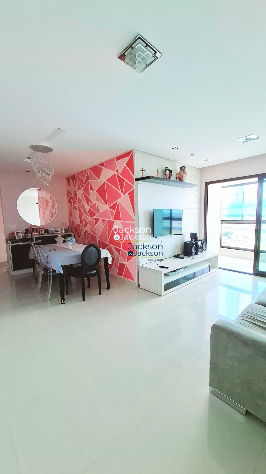 Sala Ampla para ambientes de Estar e Jantar integrados com varanda.